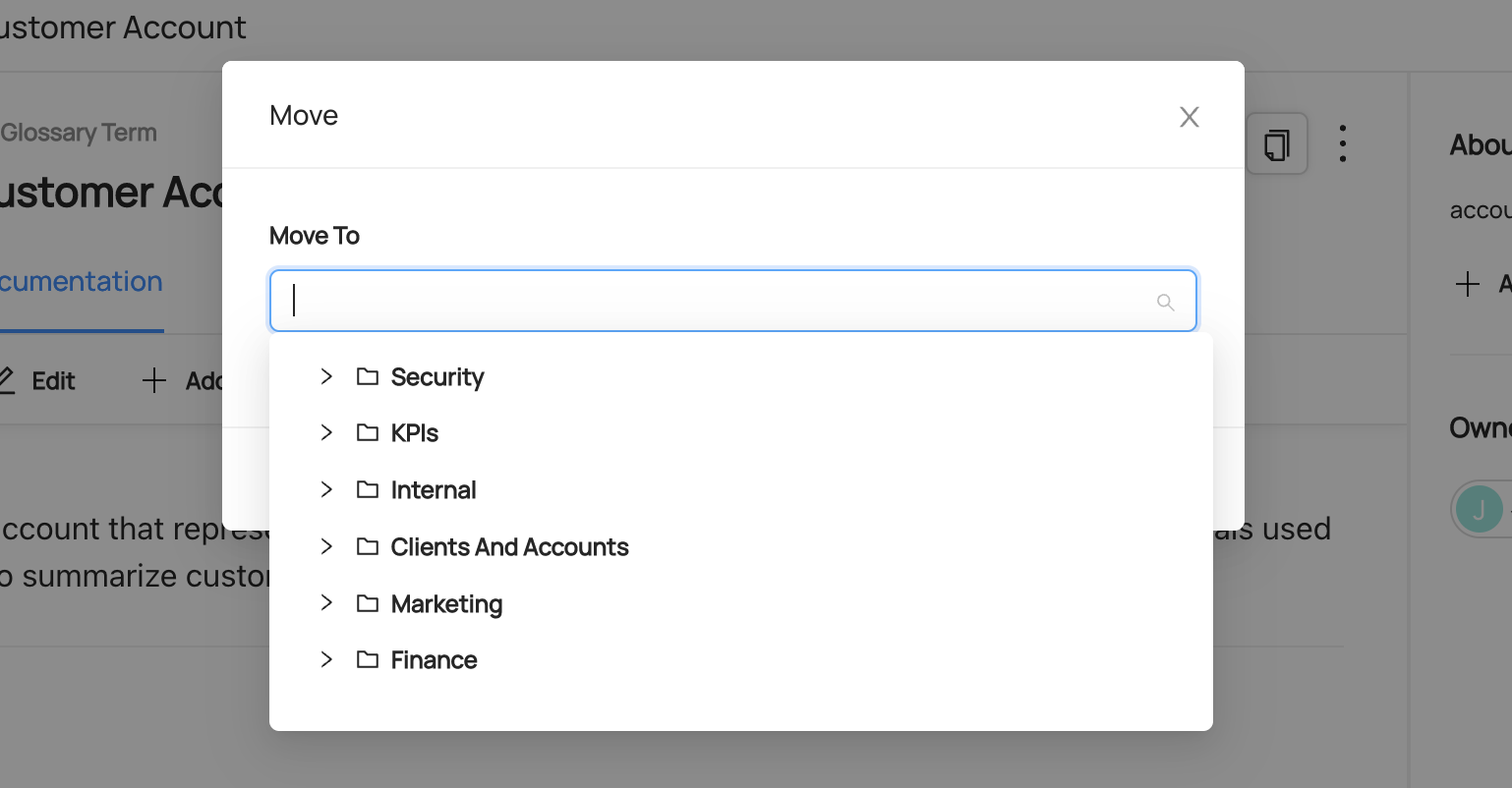 - Navigate through the Glossary dropdown that appears after clicking into the input